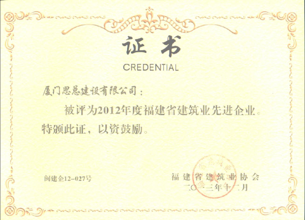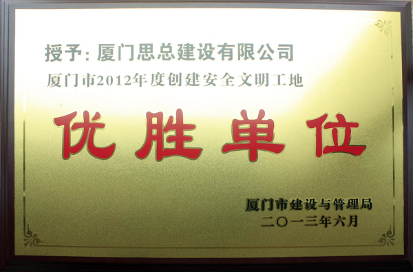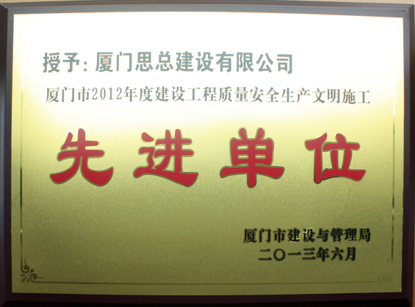 2012年度厦门市建设工程质量安全生产文明施工先进单位