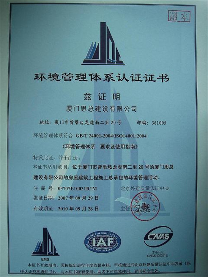 2013环境管理体系认证证书