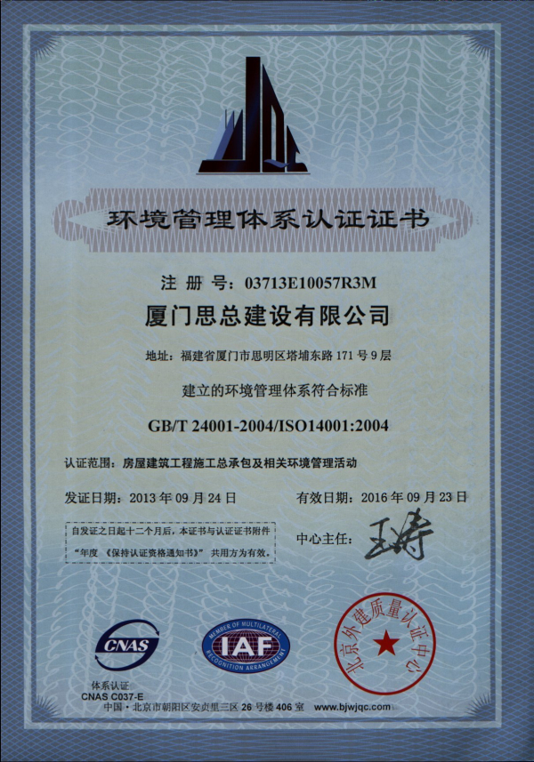 2013环境管理体系认证证书