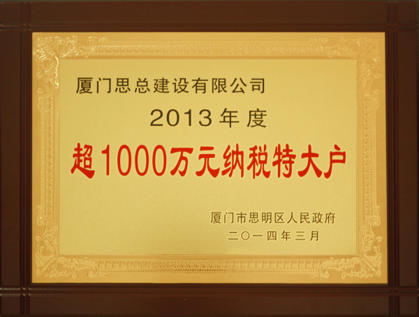 2013年度超1000万元纳税特大户-思明区