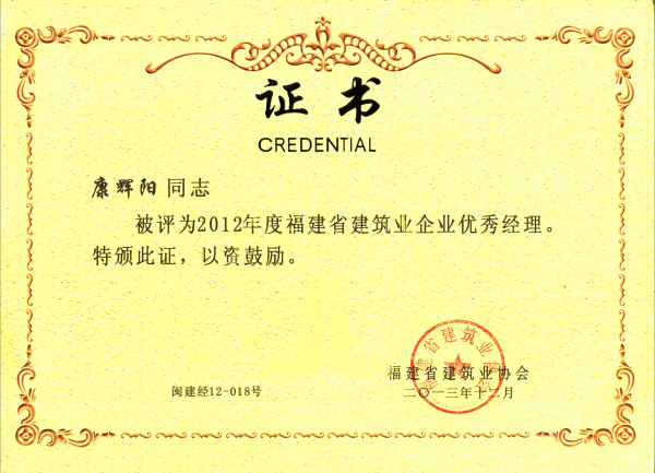 康辉阳同志2012年度福建省建筑业企业优秀经理