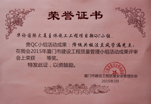 阳春三月,一年一度的厦门市建设工程质量管理小组活动评审会在白鹭洲大酒店举行,会议由厦门市建设工程质量安全管理协会主办,共有79个QC成果报名参加,协会从中择优选择35个进行现场发布;我司共有漳州•锦绣一方62-64#楼的“提高马赛克外墙贴面外观效果”等2个QC成果报名。发布会上华论国际大厦主体施工工程的“降低共板法兰风管漏光点”QC小组成员庄世龙重点从原因分析、要因确认、制定对策、对策实施等方面对小组攻关情况进行介绍,活动较好达到改进质量、降低消耗、提高人的素质和经济效益的目标,也为该项目接下来的“鼓浪杯”、“闽江杯”申报工作助力。