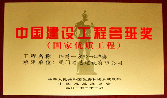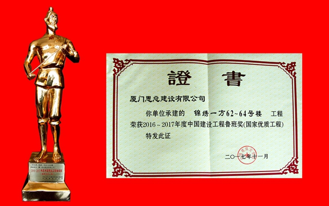 鲁班奖自1987年设立以来,历经30年的璀璨光辉,是我国建设工程质量最高奖,代表了当代我国工程建设质量的最高水平,素有建筑界“奥斯卡奖”之称,是精品工程和企业品牌的重要标志。适逢鲁班奖创立30周年之际,我司承建的锦绣一方62~64号楼工程再获此殊荣,是对“精益求精、追求卓越”的鲁班精神的最佳诠释,也是加强质量管理、提高工程质量、创立企业品牌的重要体现,更是高标准执行工程建设标准规范和实施品牌战略的重大成果,再次向业界展示了“厦门思总”的企业品牌形象,展现了“思总建设”的雄厚实力,是企业品牌建设的又一里程碑。我们将认真贯彻落实党的十九大精神,不忘初心,砥砺奋进,不断追求更加卓越的未来!