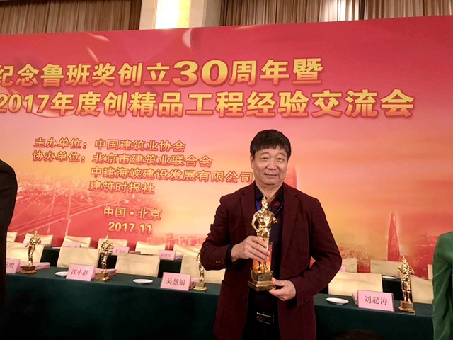 2017年11月6日,纪念鲁班奖创立30周年暨2016~2017年度创精品工程经验交流会在北京隆重举行,会议宣读了《中国建筑业协会关于颁发2016~2017年度中国建设工程鲁班奖(国家优质工程)的决定》和《住房和城乡建设部关于2016~2017年度中国建设工程鲁班奖(国家优质工程)获奖单位的通报》,共发布了238项鲁班奖,我司承建的锦绣一方62~64号楼工程获此殊荣,康辉阳总经理前往参会并领取鲁班金像及奖牌、证书。