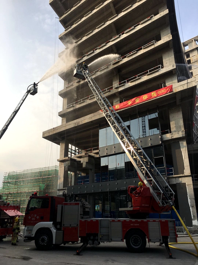 为增强建设行业消防安全意识,提高建筑工地快速反应和应急处置能力,11月16日下午,由湖里区建设局、湖里消防大队主办,湖里区建设工程质量安全监督站、厦门思总建设有限公司、福建省永泰建筑工程公司承办的湖里区建设工地灭火救援演习活动在我司承建的五缘湾2013P03地块项目开展。本次演练活动共组织100余人参加,包括我司30名员工。