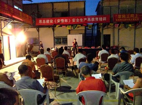 图为“安全生产月”活动期间对农民工进行集中培训