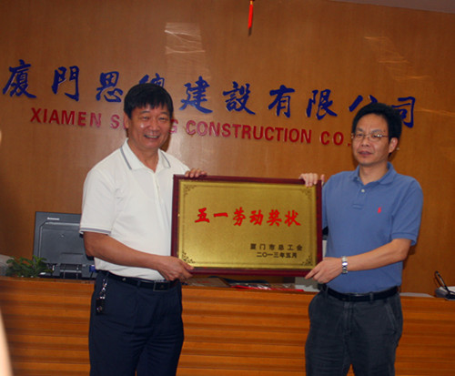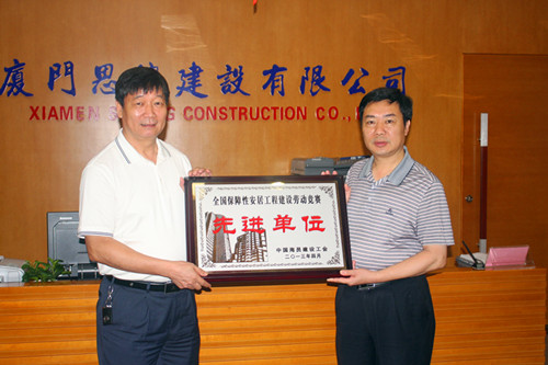 此次调研小组领导还为我司“全国保障性安居工程建设劳动竞赛先进单位”、“厦门市五一劳动奖状”获奖授牌。