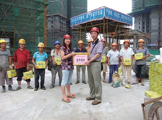 2013年09月02日下午,厦门市保险服务中心到公司杏林湾1号花园三期工程项目部开展了“2013年关爱农民工重防暑降温、重安全知识下工地活动”,给工地送来了两百多箱菊花茶、安全生产漫画图书、安全宣传横幅及安全生产教育材料。