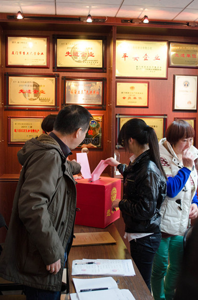 厦门思总建设有限公司支部本届任期已届满。为保持基层党组织工作的组织性、稳定性和延续性,同时根据党内有关换届选举规定及组织程序,我司支部于2013年12月30日在党员活动室召开全体党员大会进行换届选举。会议由支部书记康辉阳同志主持。