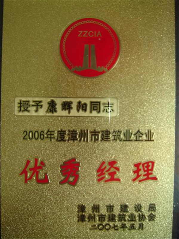 康辉阳同志2006年度漳州市建筑业企业优秀经理