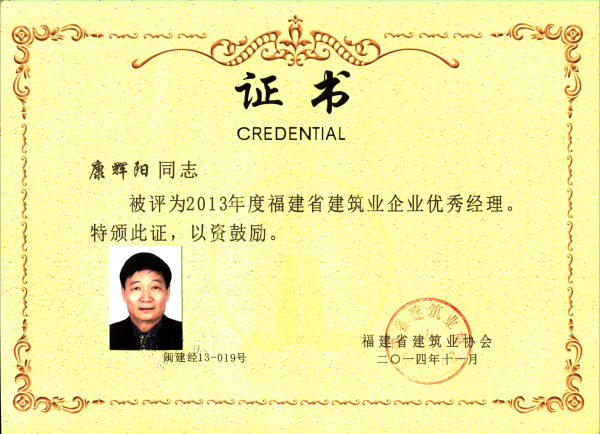 康辉阳同志2013年度福建省建筑业企业优秀经理