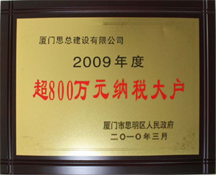 2009年超800万元纳税大户