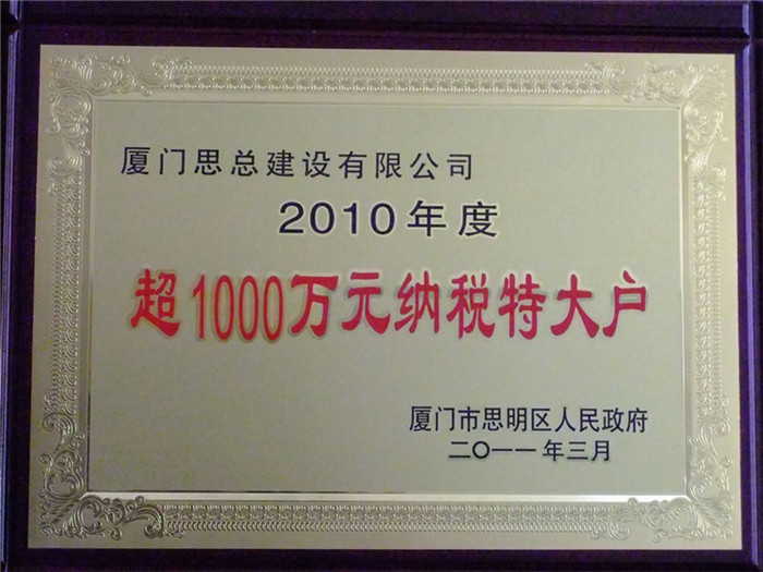 2010年度超1000万元纳税特大户