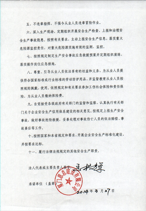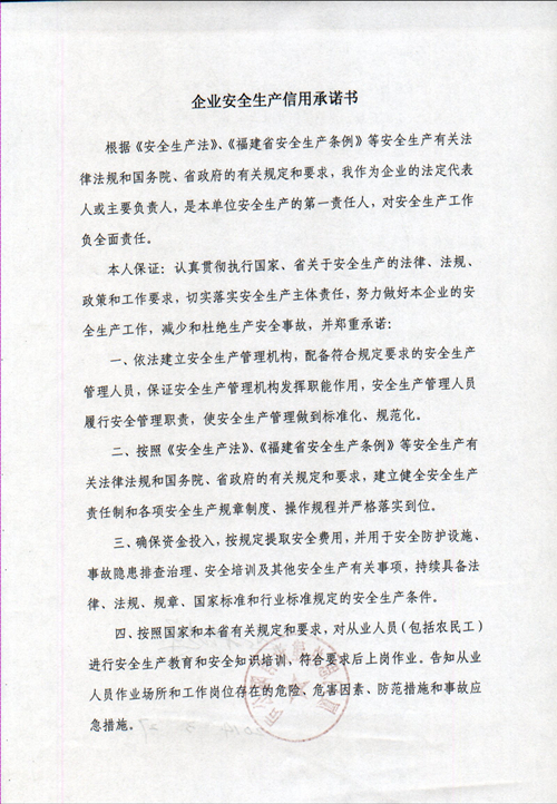 企业安全生产信用承诺书